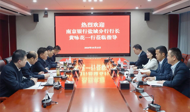 10月23日,集團(tuán)黨委書記、董事長董毅會(huì)見南京銀行鹽城分行黃詠花一行,雙方就進(jìn)一步深化金融合作座談交流。集團(tuán)黨委副書記、總經(jīng)理陳鳴永參加。2025-10-23 -
